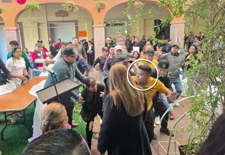 Los jaloneos generaron caos en el lugar y provocaron que se cayera la manta que se colocó atrás de la mesa donde estaban los funcionarios; mientras, Hernández de Paz salió corriendo a una de las calles aledañas, abordó un automóvil y escapó.