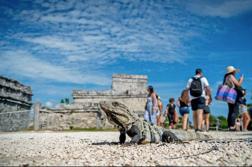 En Edzná y en Tulum es notable la presencia de iguanas. Los individuos de esa especie protegida por la ley discurren con elegancia entre las piedras de los monumentos.