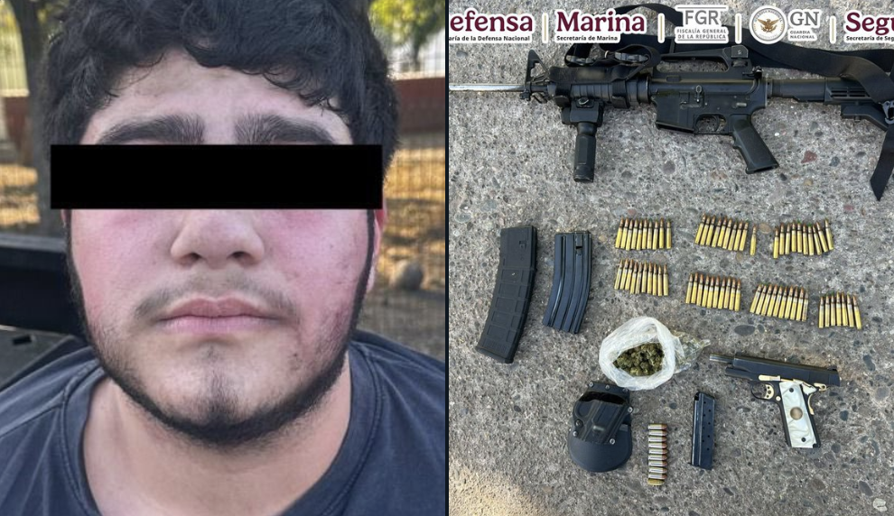 Fuerzas federales detuvieron en Culiacán, Sinaloa, a un hombre de 19 años que portaba un arma de fuego corta y un fusil y que está vinculado a un grupo delictivo que opera en la entidad.