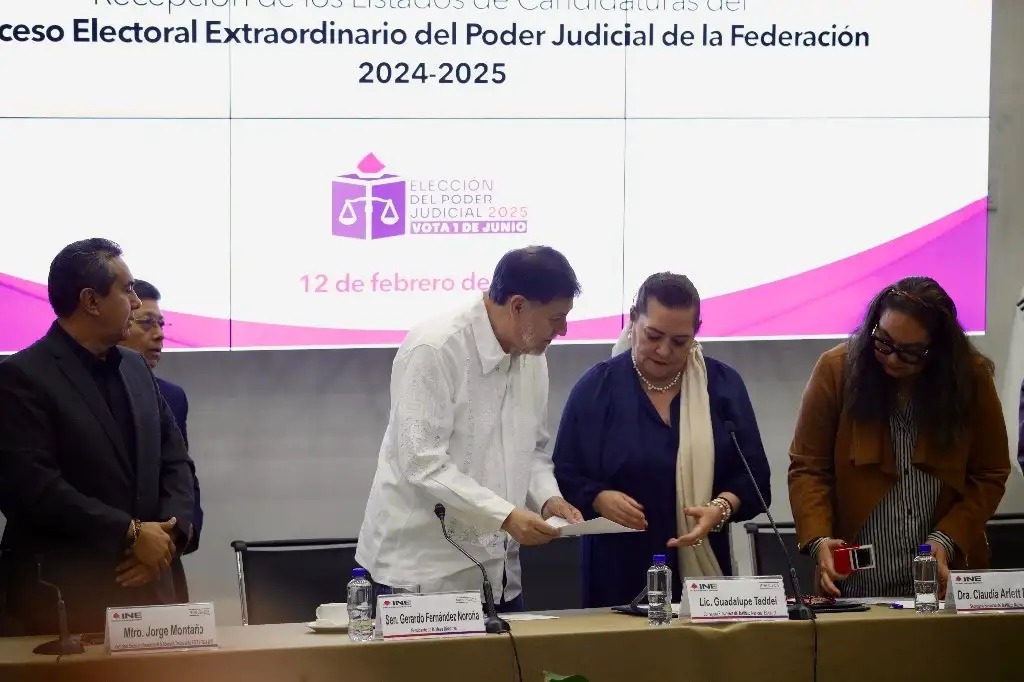 El Instituto Nacional Electoral (INE) recibió por parte del presidente del Senado de la República, Gerardo Fernández Noroña, la lista de candidatos de la elección judicial integrada por los nombres de 3 mil 801 personas; a ello se agregarán los juzgadores con pase directo. En ese contexto el legislador advirtió que nada detendrá esta elección extraordinaria e histórica.