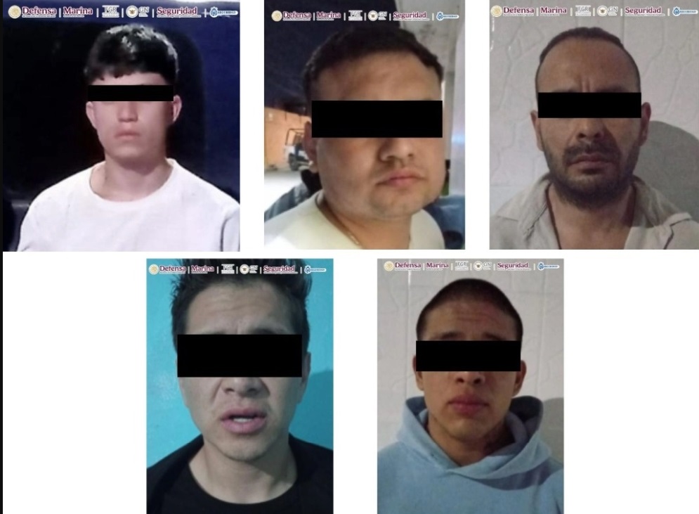 Los detenidos fueron identificados como Miguel Ángel Servín Nila, de 19 años; Víctor Iván González Alvarado, El Güero, de 29 años; Juan Manuel Anguiano Ramírez, El Pelo, de 22 años; Ulises Alejandro Ortiz Sánchez, El Ulises, de 24 años; además de Carlos Antonio Espinoza Becerra, Tony, de 40 años, y dos jóvenes de 16 y 17 años.