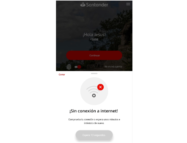 “Estamos presentando una intermitencia en nuestra App. Te pedimos hacer tus operaciones en SuperNet o en nuestros cajeros automáticos. Nuestro equipo técnico ya se encuentra revisando el incidente. Lamentamos los inconvenientes ocasionados”, señaló Santander a través de sus redes sociales.