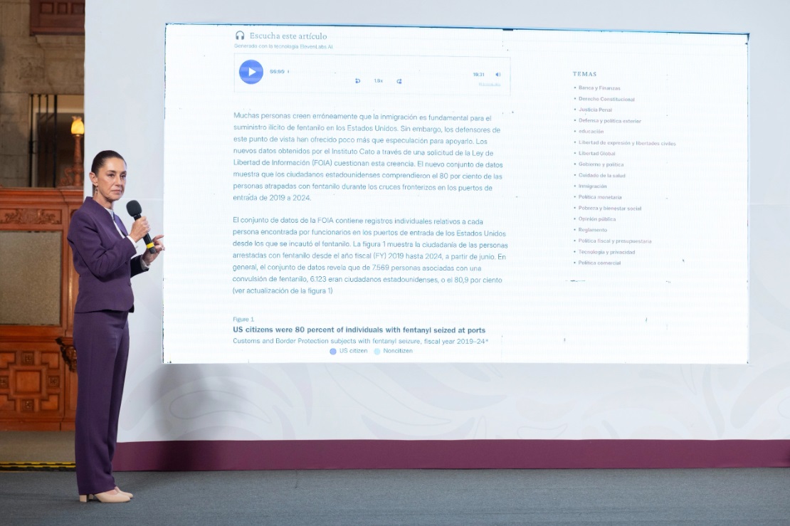 En la mañanera de este martes, la jefa del Ejecutivo resaltó que esa prueba es el reciente informe del Departamento de Justicia de Estados Unidos en el que se reveló que 74 por ciento de las armas incautadas en territorio mexicano al crimen organizado provienen precisamente de la nación del norte.