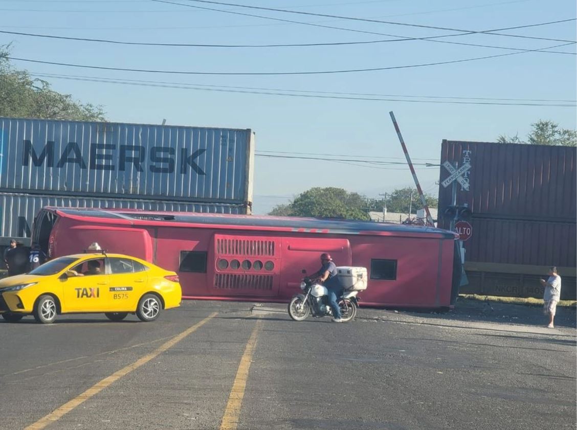 Un autobús de pasajeros de la línea "Los rojos" fue impactado por el tren en el crucero de la colonia Prados del sur en donde se reportó la muerte de dos personas y varios lesionados.