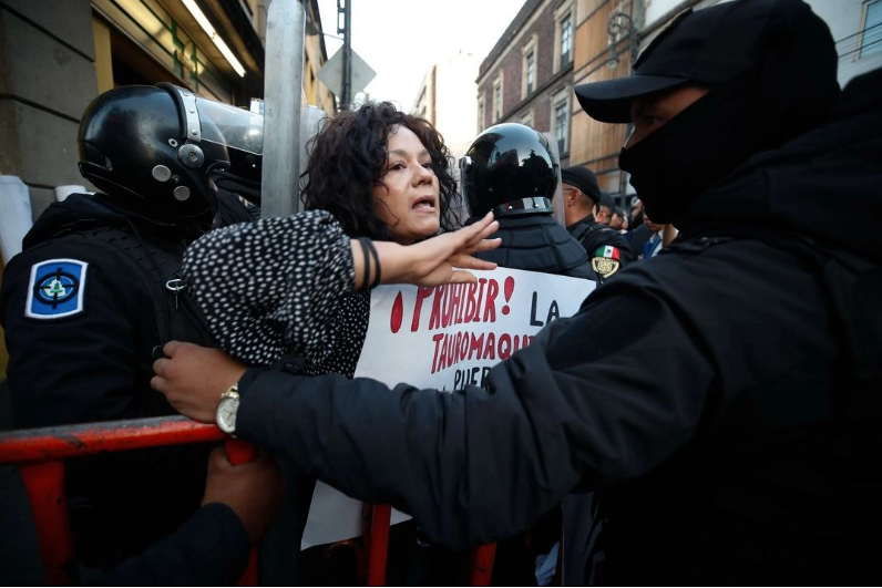 “Hoy México hará historia. Exigimos espectáculos libres de tortura”, se leía en los carteles de los manifestantes.