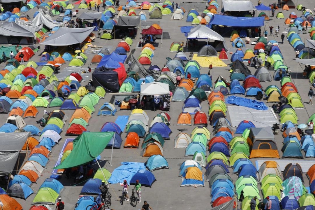 En un mitin, luego de una marcha que partió de las inmediaciones de San Lázaro y arribó a la esquina de 20 de Noviembre y Venustiano Carranza, debido a que cientos de casas de campaña se instalaron en la plancha del zócalo capitalino y en sus calles aledañas, la dirigencia nacional de la CNTE llamó al magisterio nacional a mantenerse movilizados en la capital del país y en sus estados.