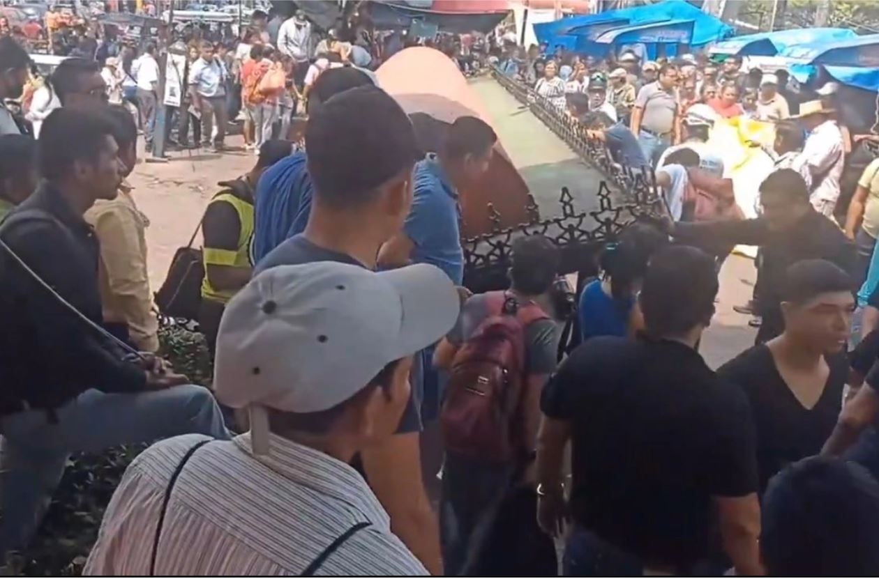 Dos personas fallecieron tras la caída este jueves de una caseta metálica utilizada como paradero de transporte público y que se ubicaba frente a la catedral de Tuxtla Gutiérrez, cerca de donde maestros de la Sección 7 del Sindicato Nacional de Trabajadores de la Educación (SNTE) mantienen un plantón.