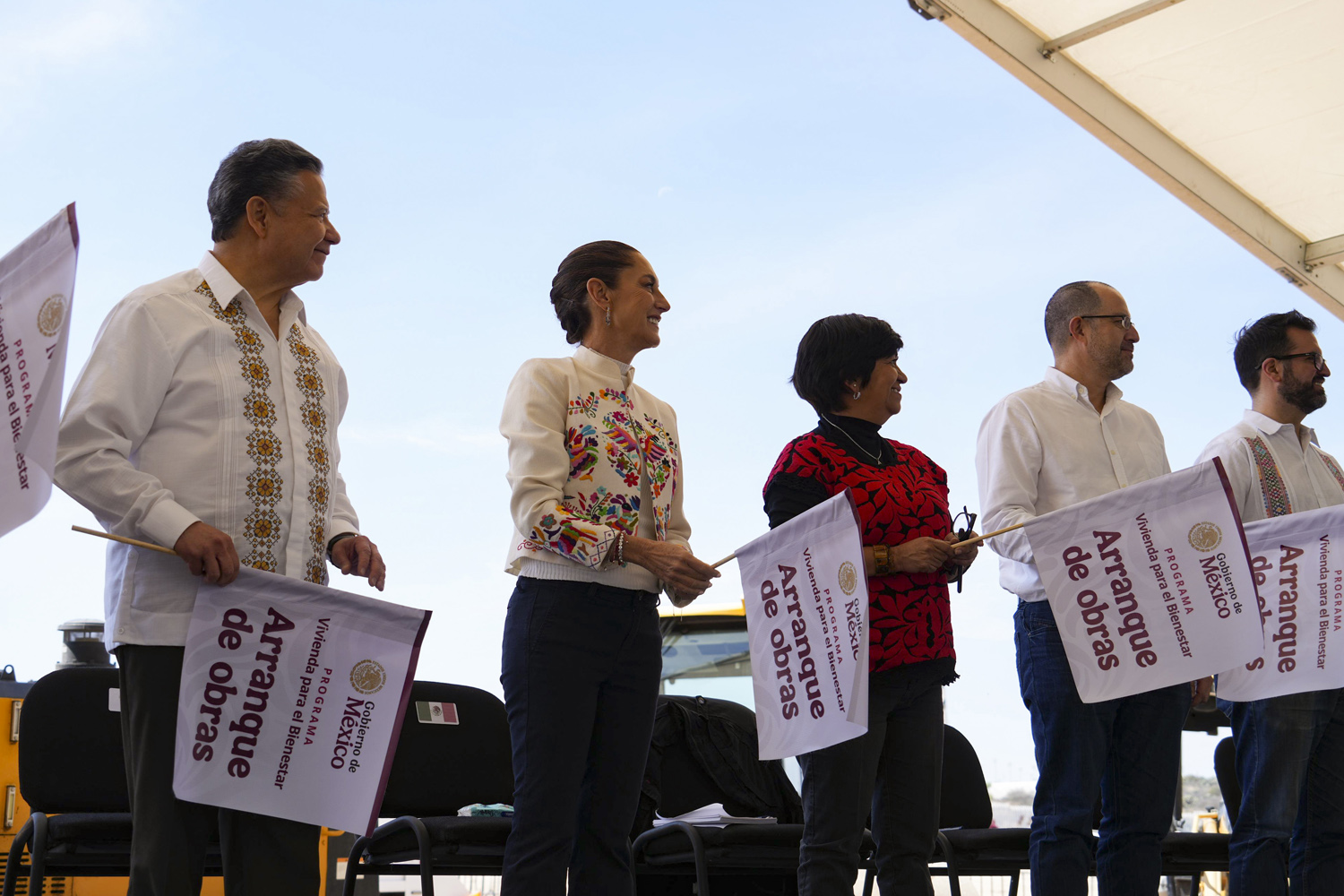 La mandataria federal estuvo acompañada del gobernador Julio Menchaca, y otros funcionarios del gobierno federal. Ante decenas de personas que se fueron cita para testificar su visita al estado, criticó que en el periodo neoliberal se construyeron viviendas pero con créditos impagables y dedicados exclusivamente al negocio de desarrolladores inmobiliarios.
