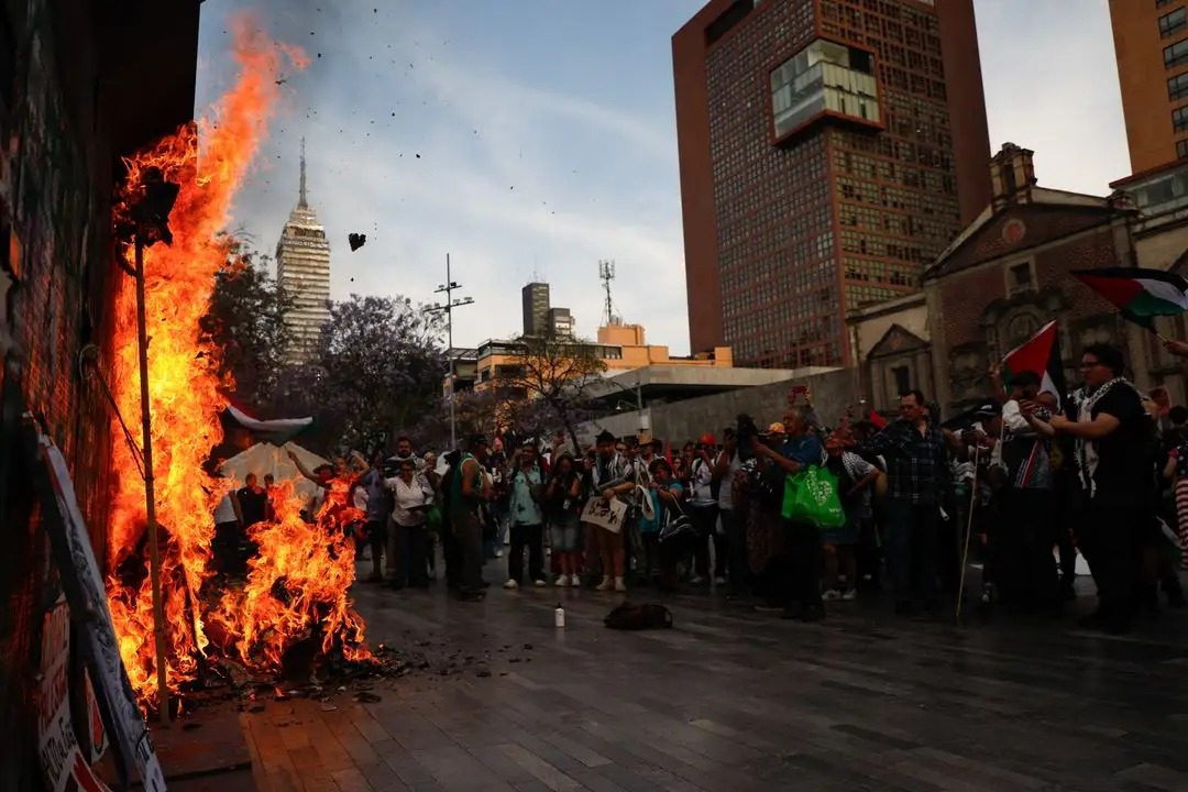 En un pronunciamiento leído en el mitin con el que cerró la movilización, la Plataforma Común por Palestina y la Asamblea Interuniversitaria y Popular por Palestina llamaron a emprender “acciones organizadas, contundentes y permanentes para exigir la ruptura de relaciones del gobierno mexicano con el Estado sionista.