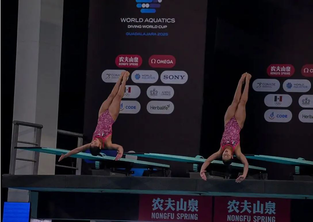 Las gemelas Lía y Mía Cueva le dieron a México su primera medalla en la Copa del Mundo de Clavados al llevarse la plata en la prueba de trampolín de tres metros sincronizado.