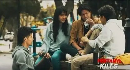 “El fentanilo mata. Destruye tu cuerpo desde la primera vez que lo consumes. El ejercicio te mantiene fuerte, y te mantiene con vida. Aléjate de las drogas, elige ser feliz”, menciona en inglés el locutor.