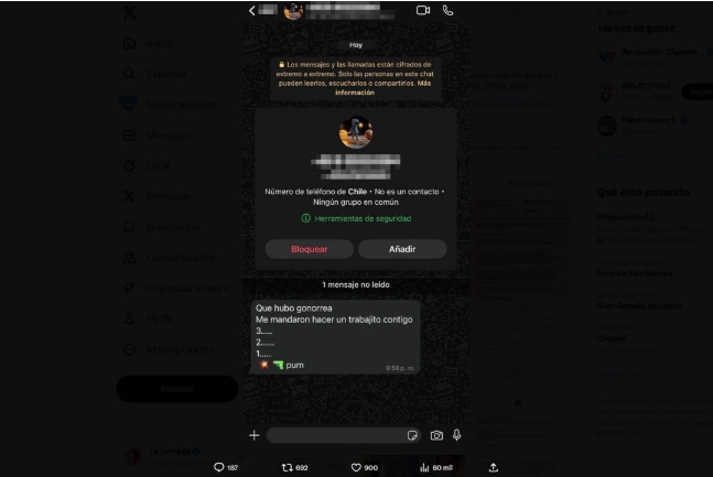 En un mensaje de la cuenta de red social X, Orlando Pérez expuso la amenaza de muerte donde se le anticipa que será asesinado. Con lenguaje procaz y un símbolo de una pistola se le advierte que será ejecutado por un “trabajito”. Y este hecho se suma a las amenazas que habría recibido en su cuenta de WhatsApp y de redes sociales a lo largo de la campaña electoral, desde enero de este año.