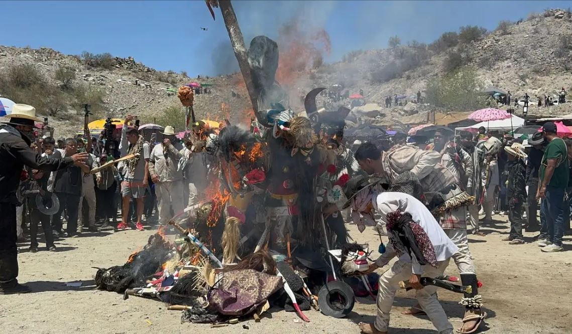 El fuego consumía una a una las máscaras que, durante semanas, ocultaron rostros y revelaron creencias. A pesar del sol implacable, que sobrepasaba los 30 grados en las faldas del cerro El Coloso, los chapayecas yaquis no detuvieron el ritual: la quema de máscaras marcaba no solo el final de la Semana Santa, sino también la renovación de un compromiso ancestral con su fe y su cultura.