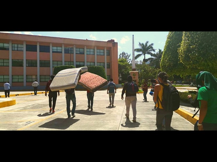 Alrededor de las 11 horas de este viernes los contingentes estudiantiles arribaron a la sede del poder legislativo estatal, en donde llevaron a cabo un mitin en el que reclamaron al presidente Andrés Manuel López Obrador que no haya resuelto el caso de los 43 estudiantes desaparecidos en septiembre de 2014.