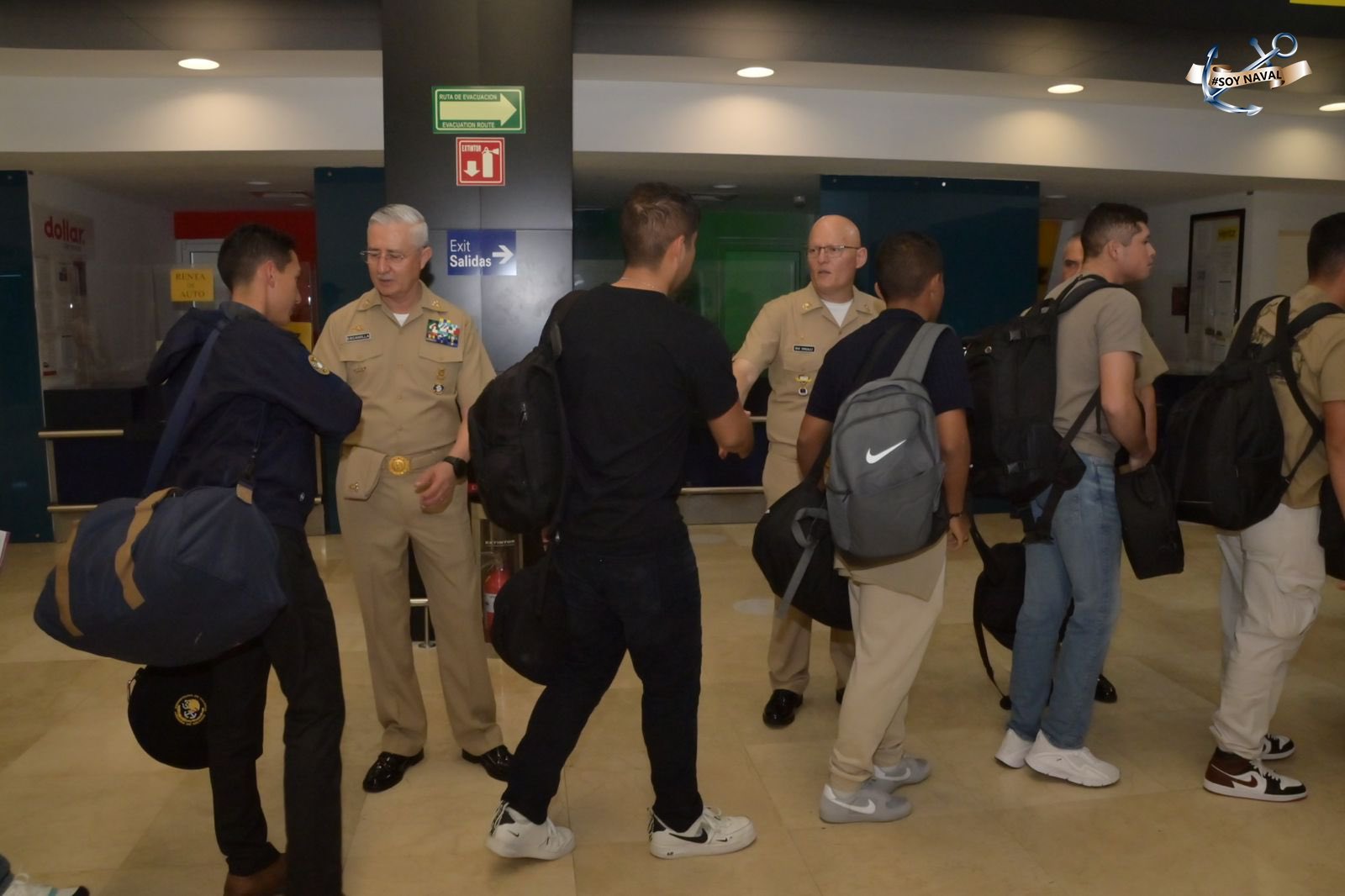 A bordo de un avión Boeing 737 los elementos de la Marina Armada de México fueron trasladados desde Estados Unidos para ser concentrados en la Heroica Escuela Naval Militar en Antón Lizardo, Veracruz.