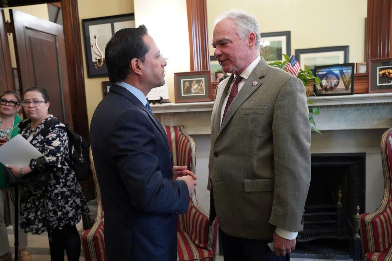 Como parte de la agenda de este día, el vicepresidente de la Mesa Directiva de la Cámara Alta y sus compañeros senadores se reunieron con el senador Tim Kaine, integrante del Subcomité para el Hemisferio Occidental del Senado de los Estados Unidos, y ex candidato a la vicepresidencia junto a Hillary Clinton, con el cual dialogaron sobre el riesgo que representa el impuesto a las remesas, no sólo para las familias migrantes, sino también por el posible desplazamiento hacia canales informales, lo que dificultará la supervisión financiera y debilitaría la infraestructura regulada que beneficia a ambos países.