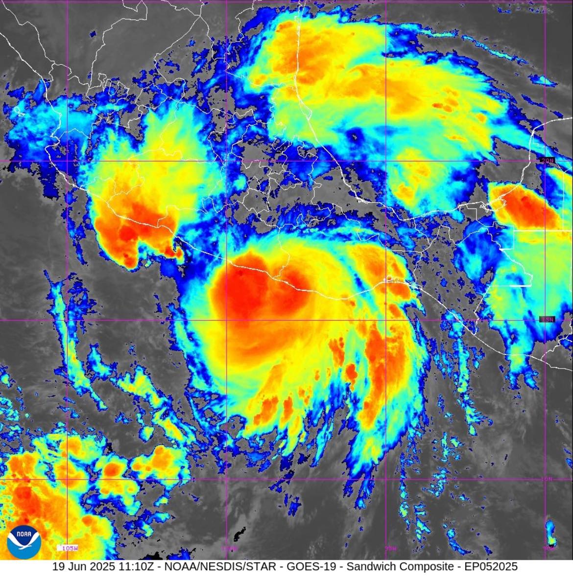 Durante las próximas horas, el ciclón tropical ocasionará lluvias torrenciales (de 150 a 250 milímetros [mm]) en Guerrero y Oaxaca, intensas (de 75 a 150 mm) en Chiapas, sur de Veracruz y sur de Puebla, vientos sostenidos de 180 a 200 con rachas mayores a 220 km/h y oleaje de 8.0 a 10.0 metros (m) de altura en costas de Oaxaca y Guerrero (oriente), así como viento de 60 a 80 km/h con rachas de 100 a 120 km/h y oleaje de 4.0 a 5.0 m en costas de Chiapas. Los vientos se debilitarán gradualmente, conforme se desplace por tierra