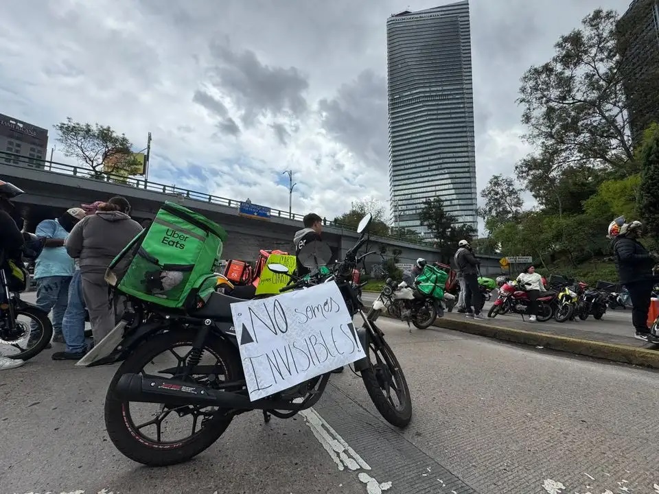Repartidores por aplicación mantienen bloqueos simultáneos en el Circuito Interior y en la avenida Paseo de la Reforma, en ambos sentidos, para protestar por la entrada en vigor de la reforma legal a plataformas digitales porque hay incertidumbre “de los costos operativos”, aseguraron, que tendrán que desembolsar los operadores.
