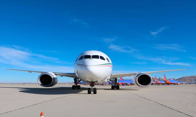 La aeronave TP01 Boeing 787, conocida como el avión presidencial, aterrizó hoy en el Aeropuerto Internacional de la Ciudad de México (AICM), procedente del aeropuerto de Víctorville, California, luego de permanecer en ese lugar 19 meses.