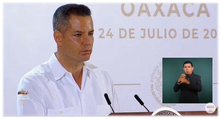 En la conferencia de prensa matutina de López Obrador en instalaciones del Campo Militar 28-A en Oaxaca, Murat destacó el compromiso del presidente por subsanar la “deuda histórica del Estado con el sureste de México". “Queremos crear, construir y crecer de la mano del gobierno federal”, manifestó.