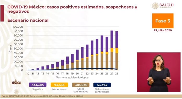 En la fase 3 de la pandemia de COVID-19 en México, este 25 de julio las cifras son las siguientes: