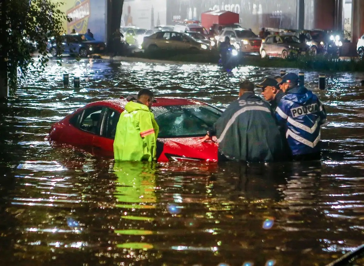 En Periférico, a la altura de Viaducto Tlalpan, automovilistas quedaron atrapados dentro de sus vehículos debido al nivel del agua, que alcanzó 50 centímetros en algunas zonas, por lo que personal de emergencias acudió al lugar para su rescate.
