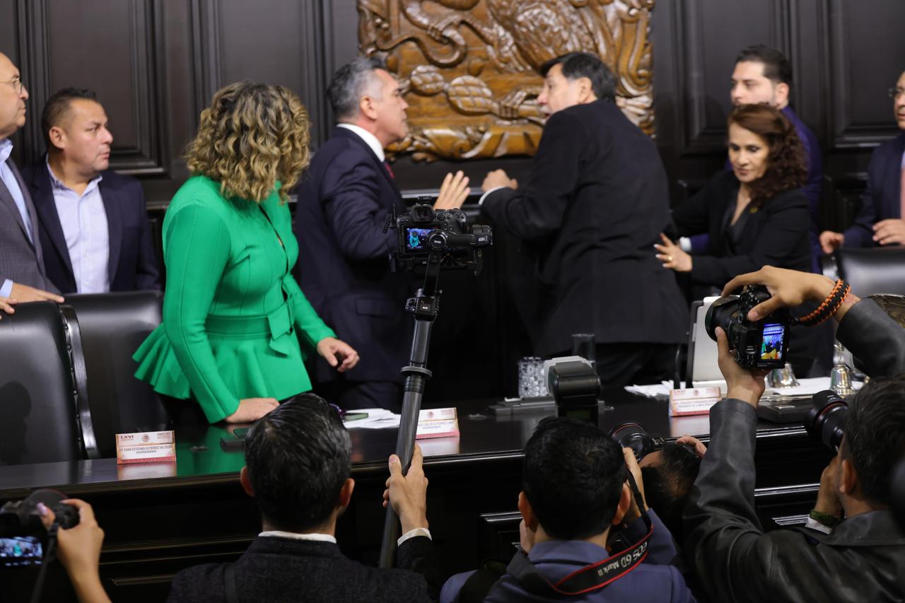 El dirigente priísta estaba incontenible, de acuerdo a los videos tomados dentro del salón de sesiones. Subió al pleno cuando estaba por cerrar la sesión. Comenzó a discutir con el presidente de la Permanente, quien le pidió esperar a que terminara el Himno Nacional.