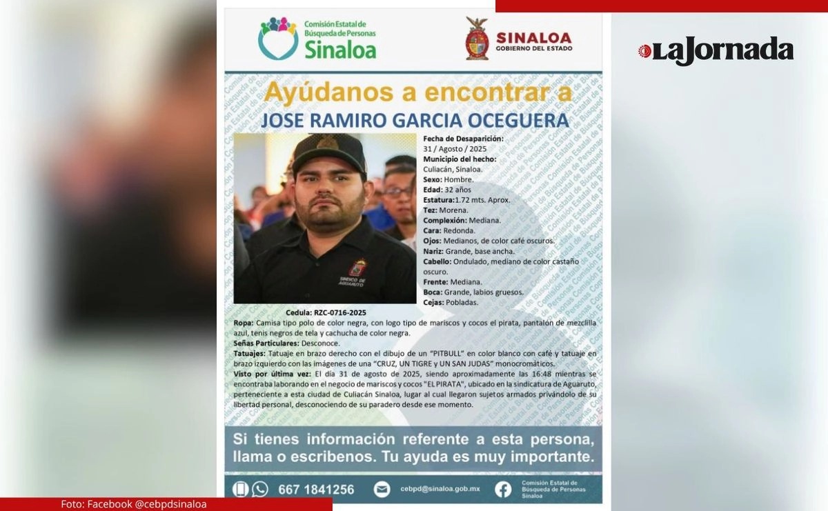 En un comunicado se informó que fue la tarde del domingo que José Ramiro García Oceguera síndico de Aguaruto fue privado de su libertad, entre las 17:00 y 18:00 horas, cuando este se encontraba laborando en su negocio de venta de cocos y mariscos “El Pirata” ubicado en la calle principal del poblado y a unos metros de la carreta Culiacán-Navolato.