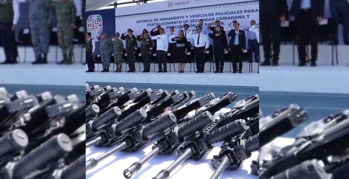El gobierno de Oaxaca, encabezado por el morenista Salomón Jara Cruz, entregó ayer rifles de asalto de la marca Israel Weapon Industries (IWI) modelo ARAD, adquiridos a la empresa IWI, perteneciente al grupo del empresario armamentista israelí Samy Katsav.