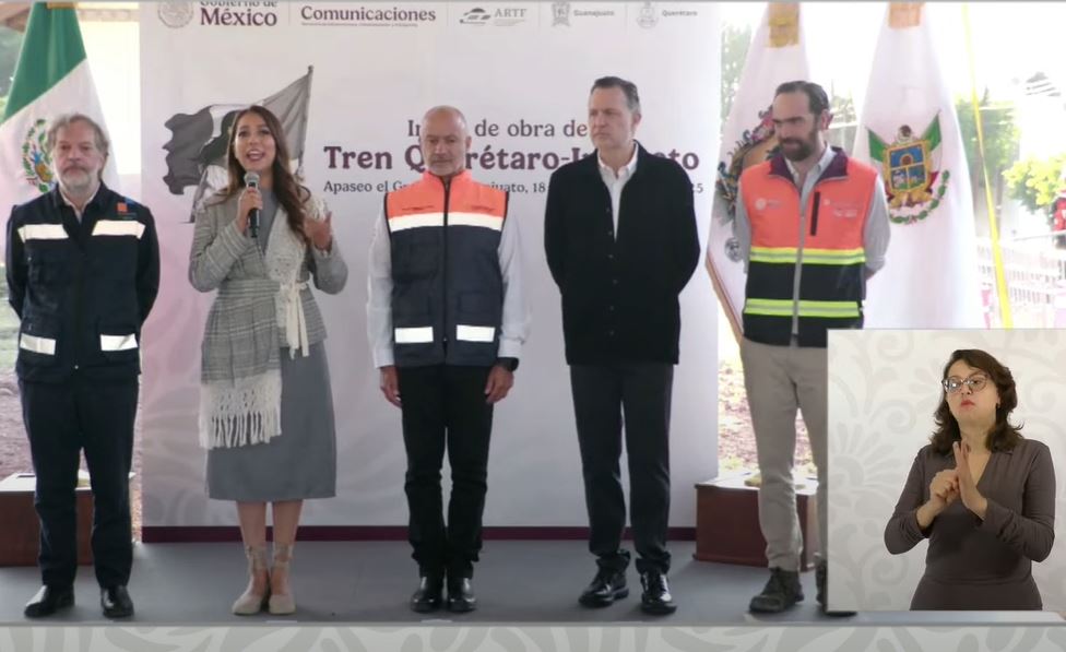 Mediante un enlace vía remota desde Apaseo el Grande, se dio el banderazo de salida a la construcción del tramo ferroviario Querétaro-Irapuato, con varias estaciones intermedias como Apaseo el Grande. A la distancia, la presidenta Claudia Sheinbaum atestiguó, desde el salón Tesorería del Palacio Nacional, el inicio de la obra que encabezaron los gobernadores de Guanajuato, Libia Denise García, y de Querétaro, Mauricio Kuri.