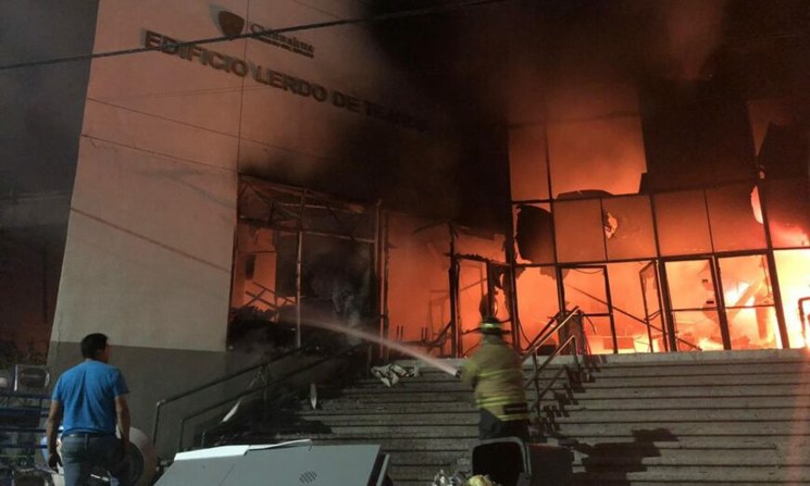 Después rompieron las puertas y ventanas del edificio Lerdo de Tejada, donde se ubican las oficinas de Recaudación de Rentas estatal, Secretaría de Relaciones Exteriores, Registro Civil, Educación, Transporte del Estado, Pensiones Civiles del Estado, Conciliación y Arbitraje y Fiscalía.