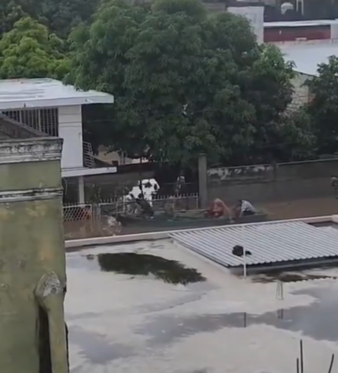 A su alrededor, el río desbordado los amenazaba y el agua les cubría hasta las caderas. Al final, una persona llegó hasta ellos en una lancha de remos.