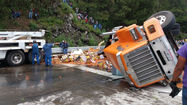 En la zona de curvas donde inicia el descenso de la llamada Sierra Nevada, volcó sobre su costado izquierdo un tráiler que transportaba legumbres.
