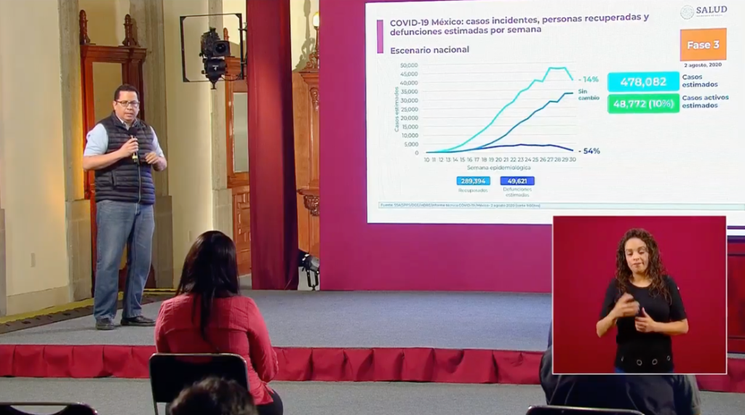 A 64 días del inicio de la nueva normalidad, el registro de casos confirmados de COVID-19 llegó a 439 mil 46, de los cuales cuatro mil 853 se sumaron en las pasadas 24 horas, y las defunciones subieron a 47 mil 746 con 274 agregadas entre sábado y domingo.