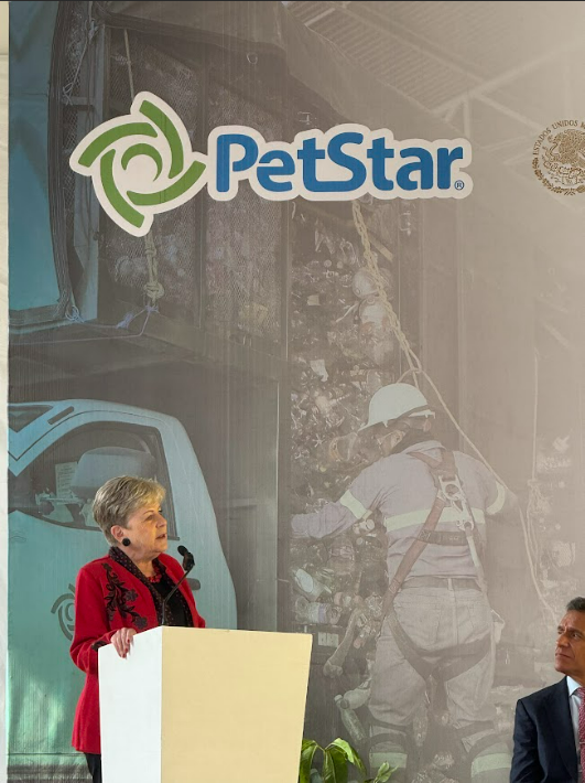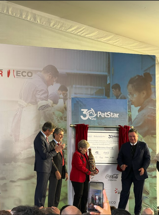 La inauguración estuvo encabezada por la secretaria de Medio Ambiente y Recursos Naturales, Alicia Bárcena, quien en su discurso destacó que PetStar, una empresa 100 por ciento mexicana, es un referente global de acopio reciclado en grado alimenticio.