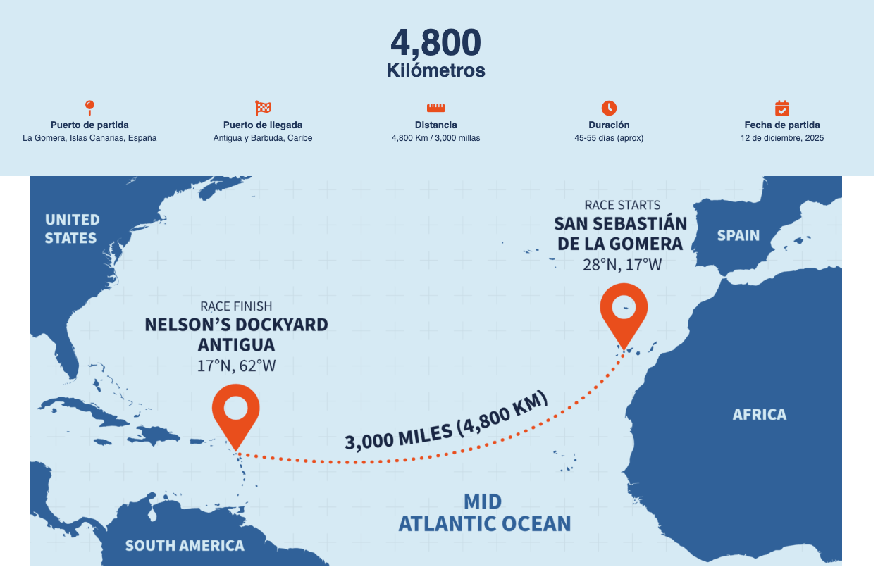 Esta carrera extrema exige resistencia física y mental, donde equipos de todo el mundo reman por 4 mil 800 kilómetros desde las Islas Canarias hasta Antigua y Barbuda, enfrentándose al poder del gran océano Atlántico.