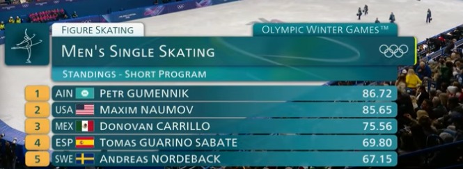 Obtuvo un puntaje de 75.56 en el programa corto varonil y pasó a su segunda final de unos Juegos Olímpicos de Invierno. Es el primer mexicano que lo consigue.