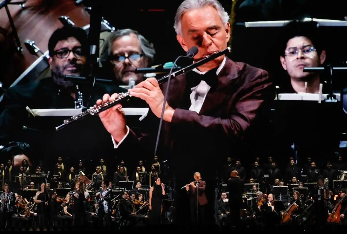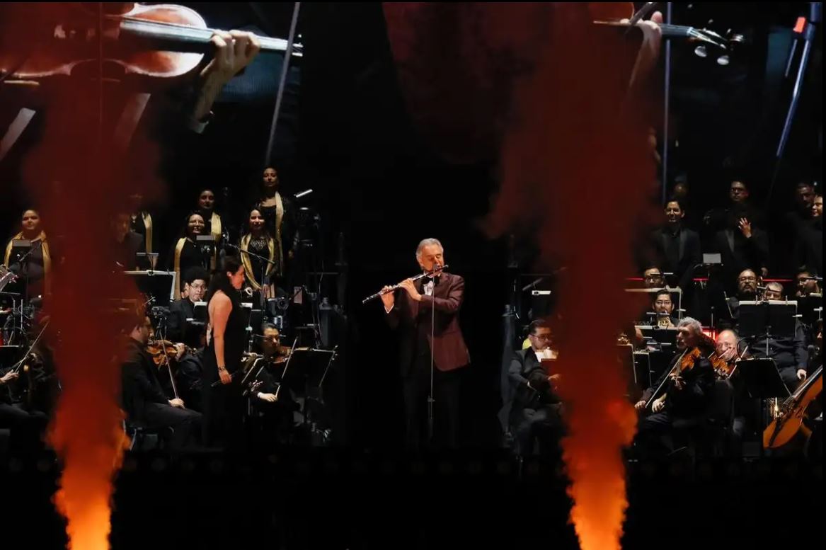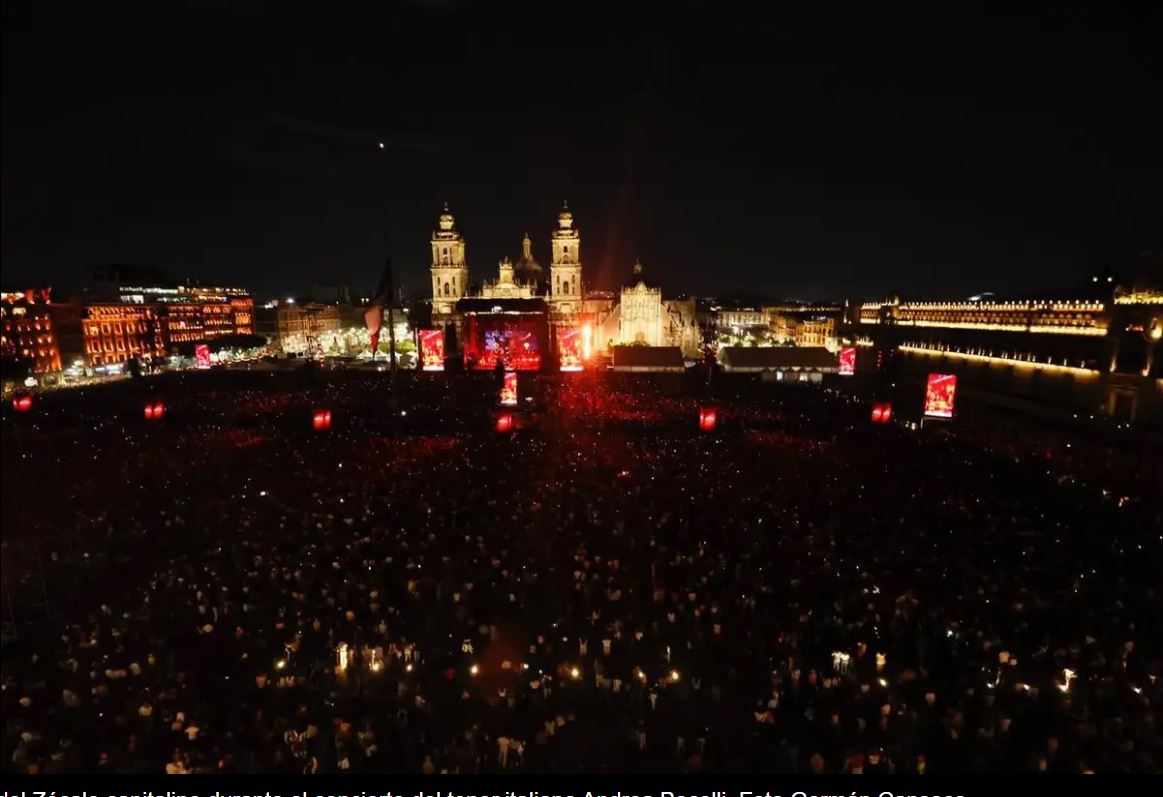 Al concluir, Bocelli mostró sus dotes de multinstrumentista al tocar la flauta traversa mientras Sariñana interpretaba el clásico de Louis Armstrong What a Wonderful World. De pronto, el cielo del corazón de la otrora gran Tenochtitlan se iluminó con fuegos artificiales, serpentinas y confeti, convirtiendo el momento en un delirio de alegría.