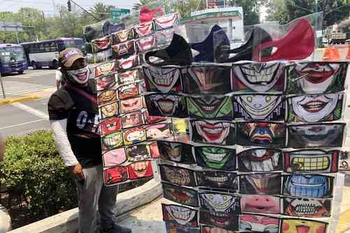 En las esquinas, afuera de centros y plazas comerciales y de mercados públicos, se venden cubrebocas de diferentes precios y con variedad de motivos que incluyen dibujos, estampados de superhéroes, de arte mexicano o diseños más elegantes para combinar con la vestimenta.