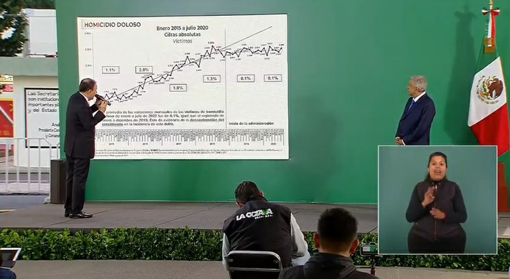 Como cada día 20 de mes, Durazo Montaño presentó el balance mensual de la incidencia delictiva durante la conferencia de prensa matutina encabezada por el presidente Andrés Manuel López Obrador, que en esta ocasión se desarrolló en Zacatecas.