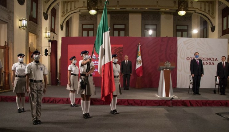Como se realiza cada lunes en todas las escuelas, se rindieron honores a la Bandera en el mismo lugar en el que cotidianamente se realizan las conferencias presidenciales.