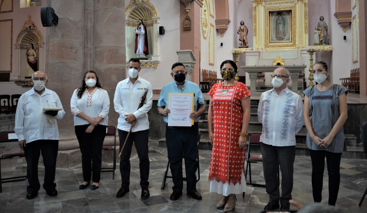 En la ceremonia, que se realizó guardando los protocolos indispensables de sana distancia, estuvieron también la presidente municipal de Huajuapan, Juanita Cruz Cruz; el director general del Instituto Nacional de Antropología e Historia, Diego Prieto Hernández; la directora general del Instituto Nacional de Bellas Artes y Literatura, Lucina Jiménez; el director del Centro INAH Oaxaca, Omar Vázquez; y el administrador de la Diócesis de Huajuapan de León, el padre Josué Rogelio Palma.