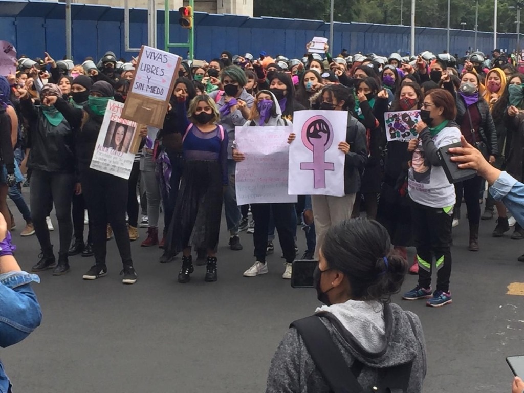 Debido al plantón que instalaron esta mañana los integrantes del Frente Nacional Anti AMLO sobre avenida Juárez, las uniformadas no permitieron el paso por dicha vialidad, lo cual llevó a las manifestantes a caminar sobre avenida Hidalgo hasta llegar a Eje Central Lázaro Cárdenas.