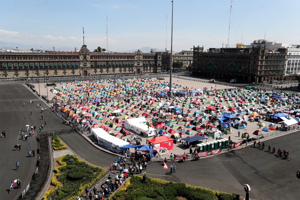 Casi a las 18 horas de ayer seguían instalando casas de campaña en el Zócalo y mantenían el plantón que ocupan en el carril central de Paseo de la Reforma con dirección norte, entre las avenidas Juárez e Hidalgo.