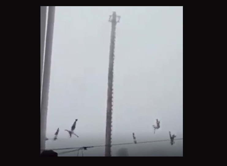El audiovisual grabó el momento en el que el danzante y sus tres compañeros descienden colgados de las piernas dando vueltas concéntricas en el aire, representando los cuatro puntos cardinales, cuando ocurrió el percance.