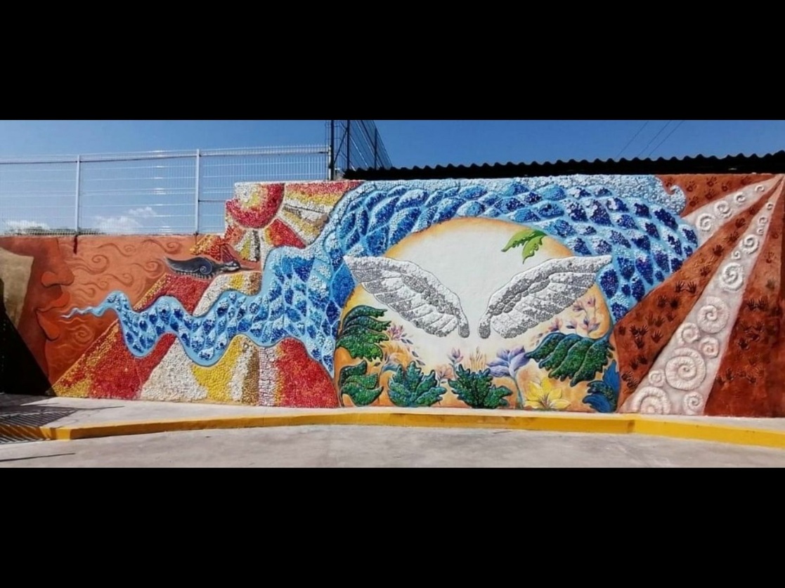 “Este mural es una leyenda guarijía que crea un nuevo mundo pero a partir de ese nuevo mundo ya le toca a las personas ser parte del cambio y por eso están las alas ahí, también es un recuerdo a las personas que se fueron por el COVID”, expuso Lucy Aguirre, en entrevista para La Jornada.