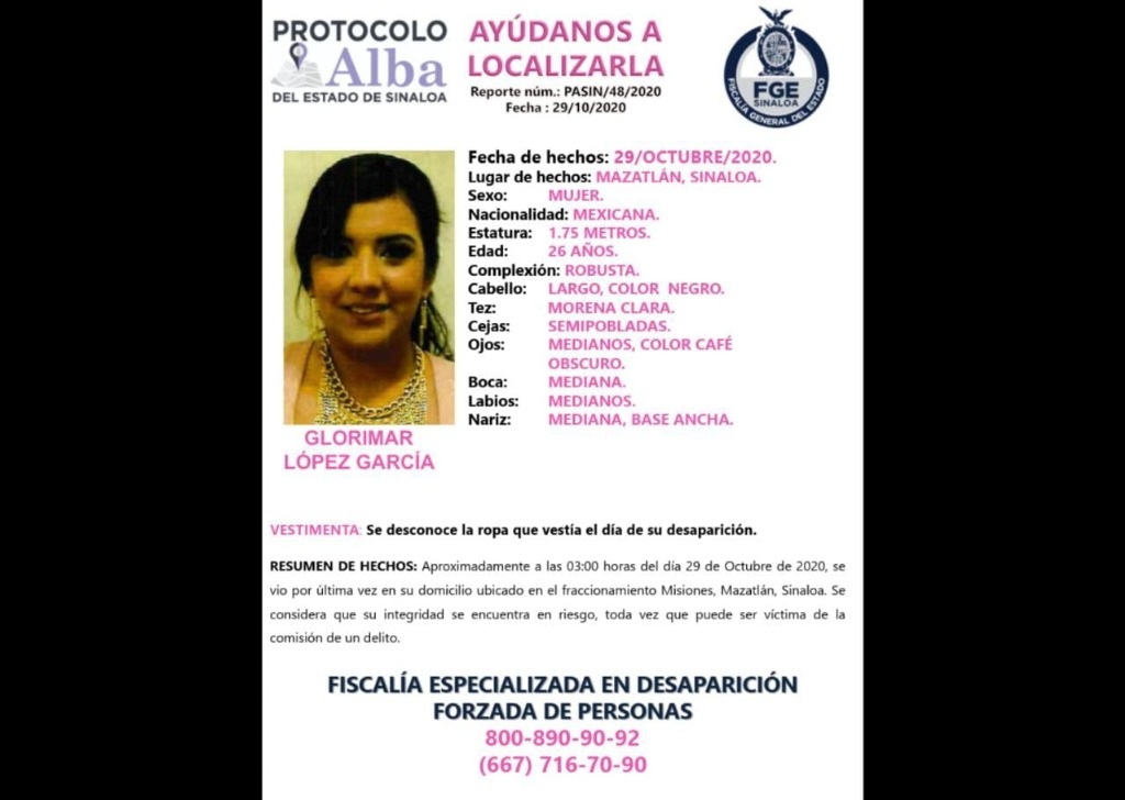 La Fiscalía en Sinaloa considera que la integridad de la enfermera está en riesgo, por lo que pidió la colaboración de la ciudadanía para que aporte datos que ayuden a su localización reportando cualquier información que ayude a la Fiscalía Especializada en Desaparición Forzada de Personas, a encontrarla, a los números 800 890 90 92 o 6677167090.