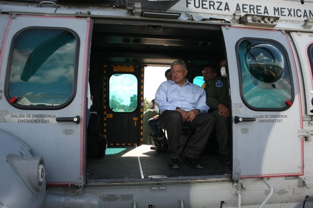En un recorrido sorpresa por la Plaza de Armas, el presidente Andrés Manuel López Obrador aseveró hoy que por las inundaciones han fallecido cinco personas y aseguró que la presa Peñitas está bajando su nivel, por lo cual el desfogue es menor respecto al de ayer. El presidente retorna en vuelo comercial a la Ciudad de México.