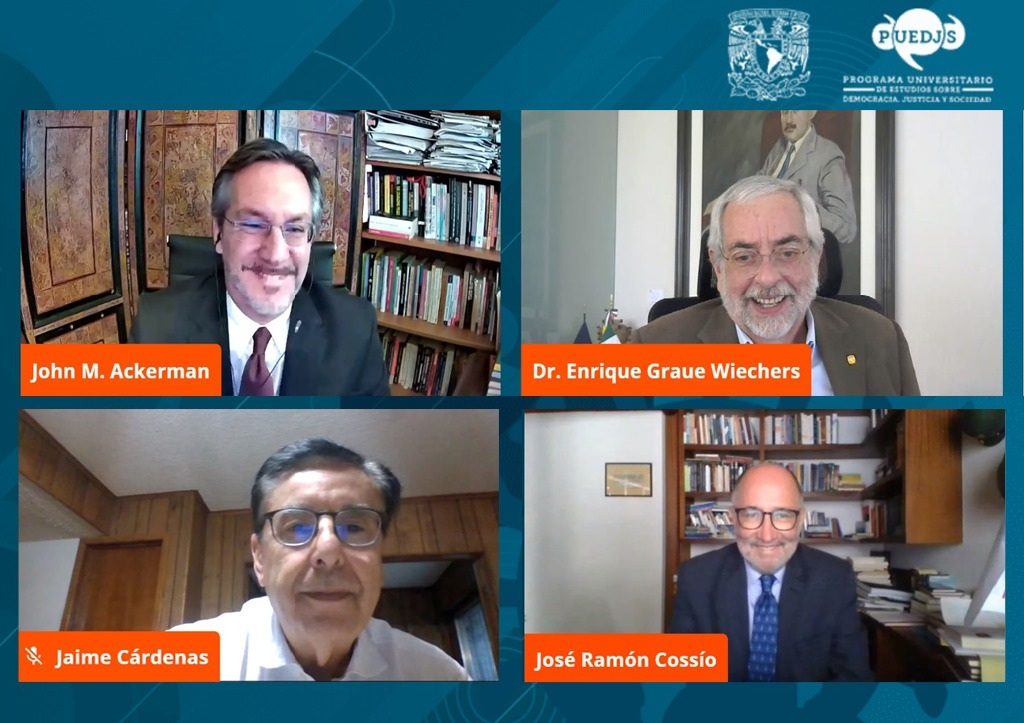 En el primer diálogo magistral, los destacados juristas José Ramón Cossío Díaz, ministro en retiro de la Suprema Corte de Justicia de la Nación; y Jaime Cárdenas, investigador del Instituto de Investigaciones Jurídicas de la UNAM y ex director del Instituto para Devolver al Pueblo lo Robado, debatieron en torno a los instrumentos de democracia participativa, en particular a las consultas populares.