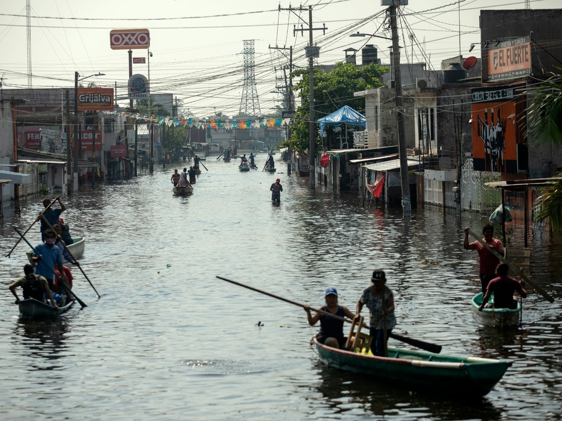 En Villahermosa las inundaciones todavía no bajan, particularmente en Gaviotas Sur, donde algunas familias rehusaron ir a los albergues y se mantienen en los techos de sus casas o segundas plantas, ante el temer que les roben las pertenencias que lograron rescatar de las corrientes.